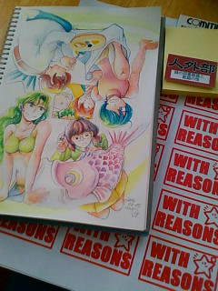 スペースに来られた方にはスペース欄にスタンプ押しますが、本をお買い上げくださった方には、先日ブログにアップした手製の消しゴムはんこを押させていただく予定です(逆に困るかな…?)。