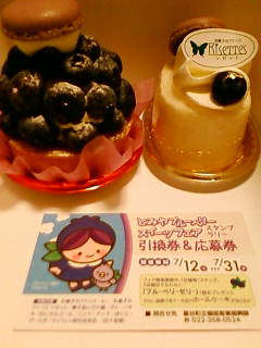 下のカードは裏がスタンプのスペースになってて、2店舗でスタンプ押してもらったら、ブルーベリーゼリーが当たる&さらにカードの所定の場所に住所氏名等書いて店舗の応募箱に入れたら抽選でホールケーキ(5号)が当たる、という素敵なカードです。