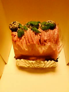 ↑「ガトーノザキ」さんのブルーベリーのモンブラン。傾いてるのは私のがさつさのせいですごめんなさい(汗)なんと中にもブルーベリーがまるっと入ってるぞ!