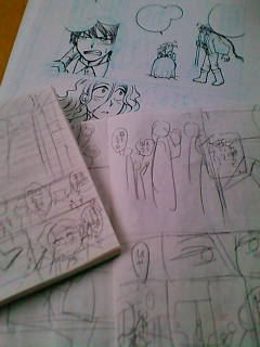 で、以前お声かけていただいた某同人誌に出そうかなというショートショート(大きい方のラフ)、こちらの締切も8月末で時間がない…現在下書き中、こちらも背景とか色々描くものが…あと、事情あって全アナログ描きなので急がないと。