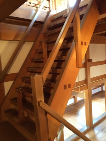 恐ろしいほど急傾斜の階段。ここを登って天守閣へ行く。