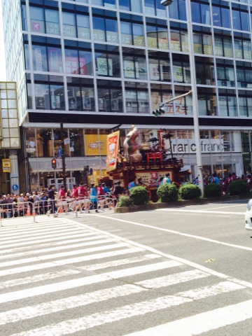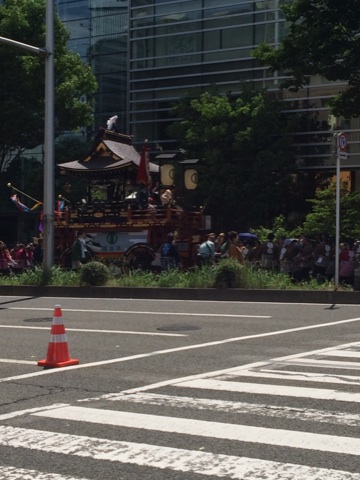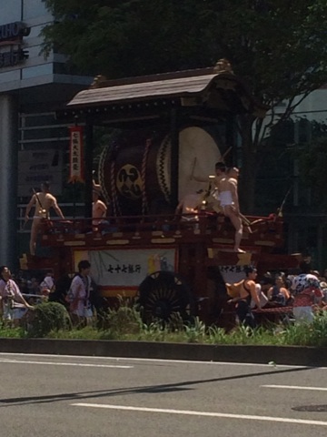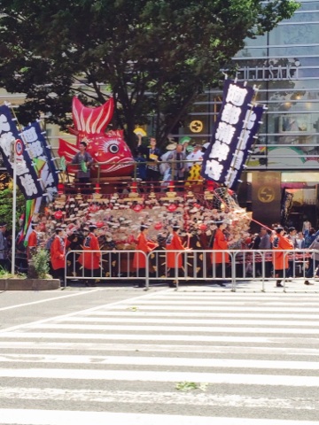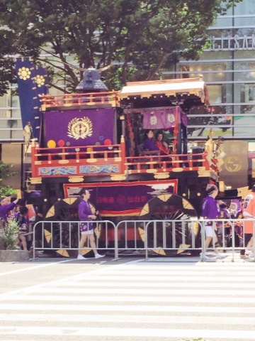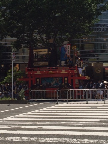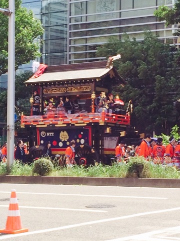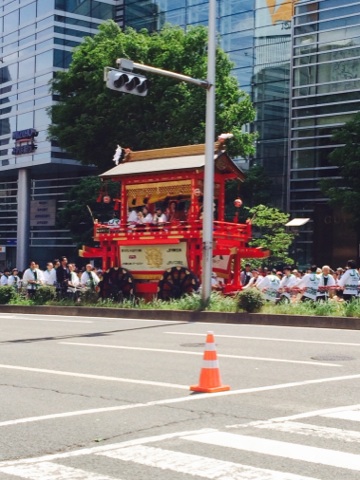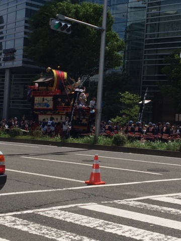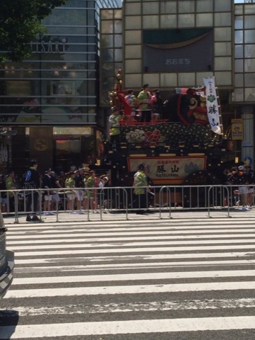 実はこの山鉾の前にも太鼓がいくつか乗った車?が進んでます。太鼓すごかったよ!