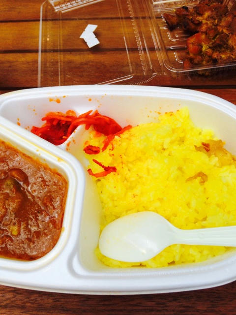 旦那と仙台のアーケードで開催してた伊達美味マーケット行ってきて、そこで食べたカレーとチキン。一番辛くないのをお願いしたけど、予想に反して赤い漬物(玉ねぎのようでした)がめっちゃ辛くてびっくりした。でも美味しかった。