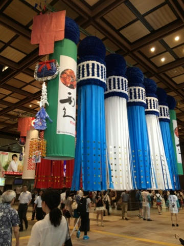 おととい行ってみたら、一足早く仙台七夕まつりの飾りをしていた仙台駅。七夕飾り、でかいんですよ…。