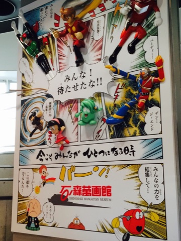 同じく3階にはライブラリーもあって、石ノ森作品に限らず漫画が山ほどあるのですが、ここに腰をおちつけてしまったら数時間は平気で居座るぞと(苦笑)、仕方なく各自本1冊くらい読んだだけで出てきました。しかし読みたいの山ほどあるよ…。