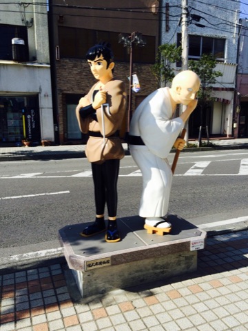 http://www.man-bow.com/manga/15分くらい歩きますが、道のあちこちにいらっしゃるキャラクターを追っていけば着きます。