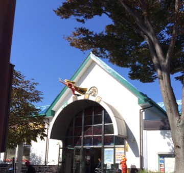 旦那の話によると、萬画館近くに有名な海鮮丼のお店があるとかで、行ってみましたら、建物は被災してて入口にブルーシートがかけられてました。お店は移転してましたが、どうも駅をはさんで反対側のようなので、まずは萬画館へ行くことに。