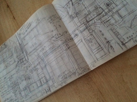 それにしても、落書き帳見直して、紅葉旅館の部屋割り案とか何度も書いてあって自分で驚いた。こんなに描いたっけかなあ。当時やたら旅館関係の雑誌読み漁ったり部屋の絵描いたのは覚えてるけど。