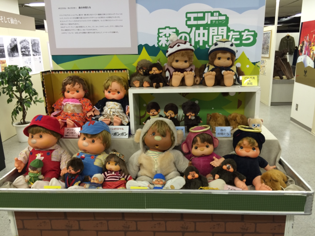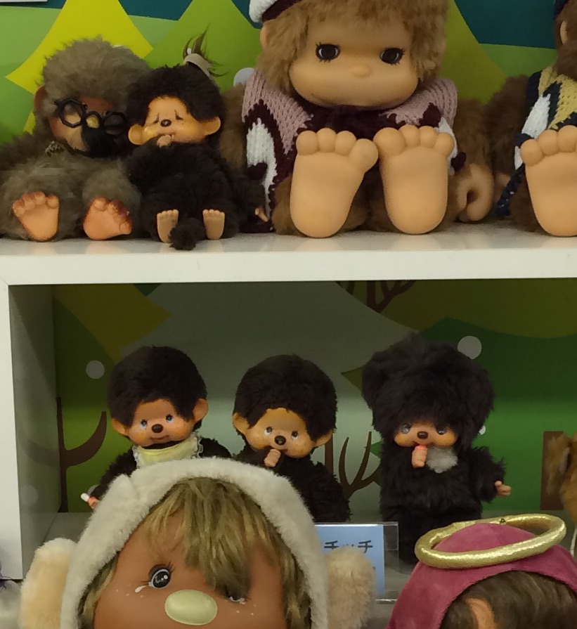 旦那がその場でスマホで調べたところ、どうも「元々ここ(エンドーチェーン・宮城の会社)が作ってたオリジナルの人形(結構種類が多くて、上の写真がその仲間たち一同)をもとに(許可とった上で)別会社がモンチッチを作った」ということらしいのですが、自分も今さっき検索かけてみたんですが、なんというか公式な情報がズバッと出てこない…事実ならもっとがっつりアピールしてもいいのではと思うんですが…探し方が悪いんだろうか。かもしれん。