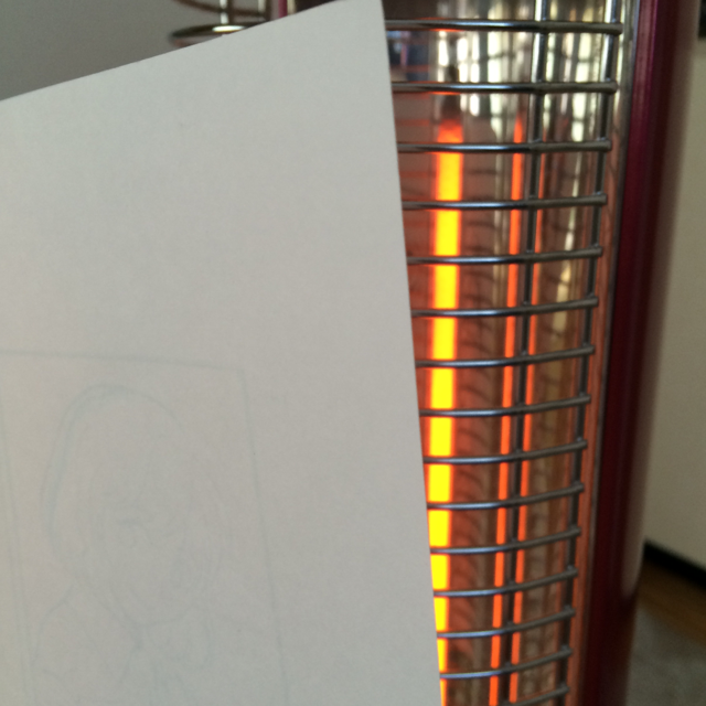 先ほどのまとめではドライヤーを使ってましたが、カットひとつなのでストーブに当てました。