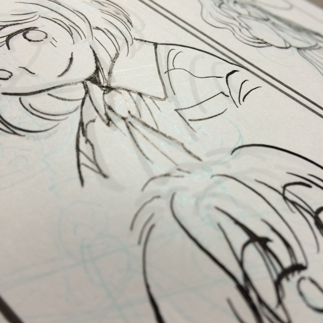 丸ペンでペン入れ。にじむ~!