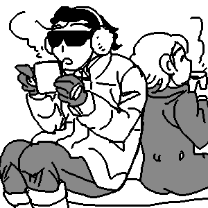 ↑本当はバレンタイン用に描いてた、ホットチョコを飲む師匠とかりん。