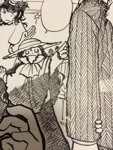 キャラクター線は普通のGペン、アミや服の模様、背景などは新ペン先(スクールペン)。